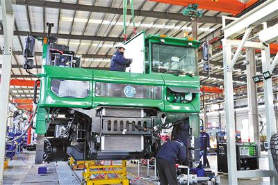 铁辰智能装备有限公司大吨位纯电动无人驾驶宽体矿用车生产线。王丽曼 摄