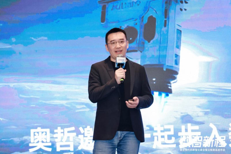 产品发布环节,奥哲高级副总裁孟凡俊带来了《奥哲·云枢 数智化All in One再升级》的主题演讲。