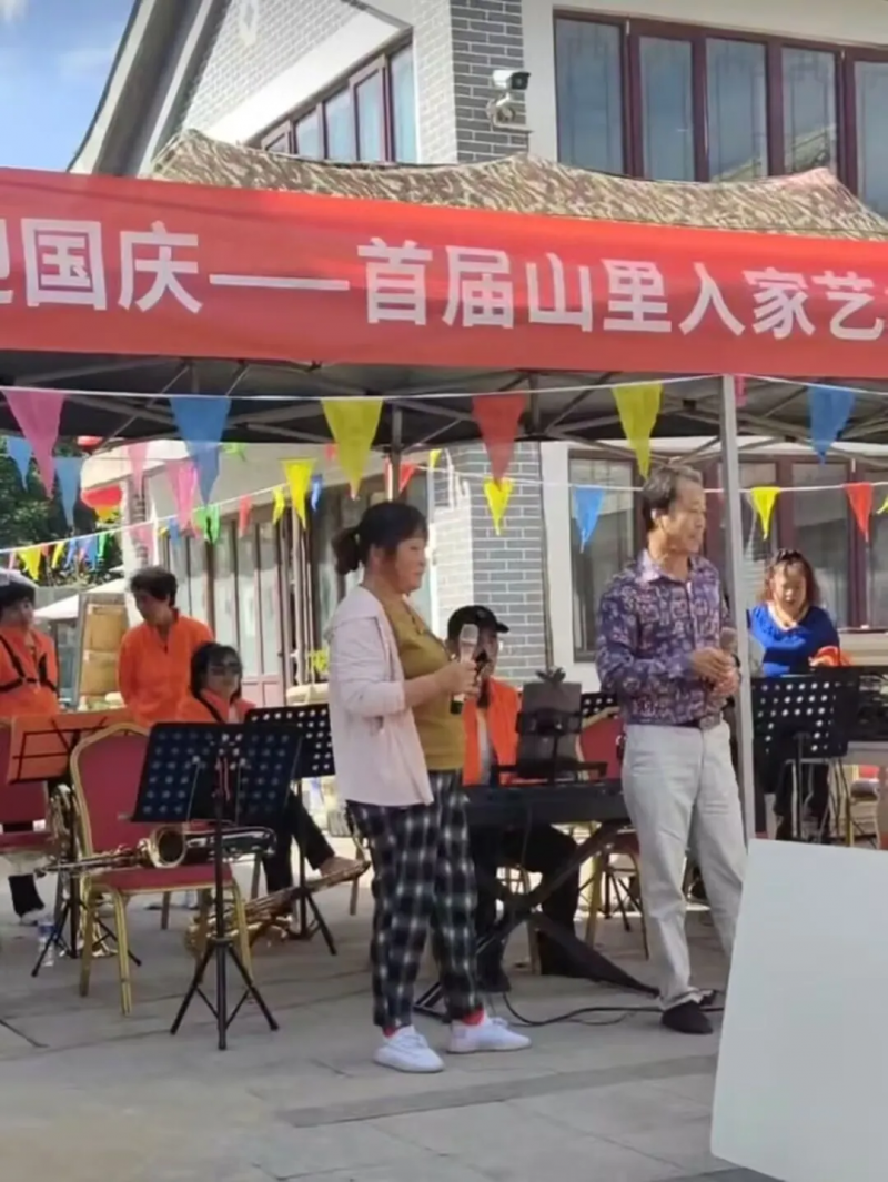 除了精彩的书画展示与创作,现场还安排了乐队歌唱表演。乐队以“歌颂祖国、赞美家乡”为主题,演唱了《我和我的祖国》《歌唱祖国》《家乡的云》等经典歌曲。悠扬的旋律、深情的演唱感染了在场每一位观众,大家纷纷跟唱,歌声在庭院中回荡,将国庆的喜庆氛围推向顶点。艺术家曾春玲献歌一曲《故乡是北京》,赢得现场阵阵喝彩。,游客王先生表示:“这个国庆来山里人家太值了,既能看名家书画,又能听经典歌曲,还能感受乡村的宁静,这种文化与自然结合的体验特别棒。”