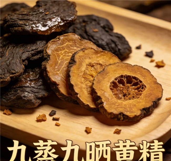 很多消费者以为九蒸九晒的黄精就是越黑越好,其实这是错误的。部分商家为了营造“古法炮制”的假象,会用焦糖染色或者高温烘烤的方式让黄精颜色变得非常深,甚至发黑发暗,实际上这样的黄精内部的活性成分已经被破坏,甚至可能含有有害物质。真正九蒸九晒的优质黄精应该是自然的深棕色,表面带有天然的油光,断面有透亮的胶质,闻起来有淡淡的甜香,不会是死黑的颜色。