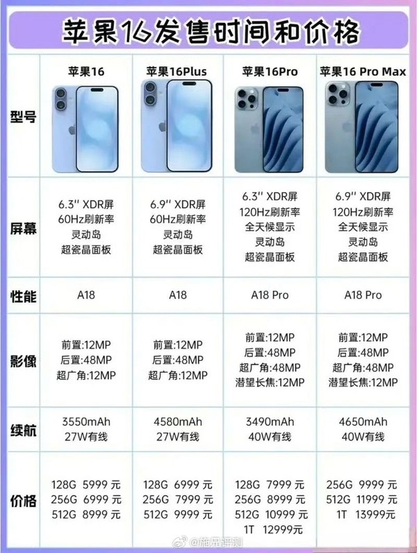 赶在发布前!苹果iPhone 16国行售价、参数曝光:这价你买它还是华为三折叠