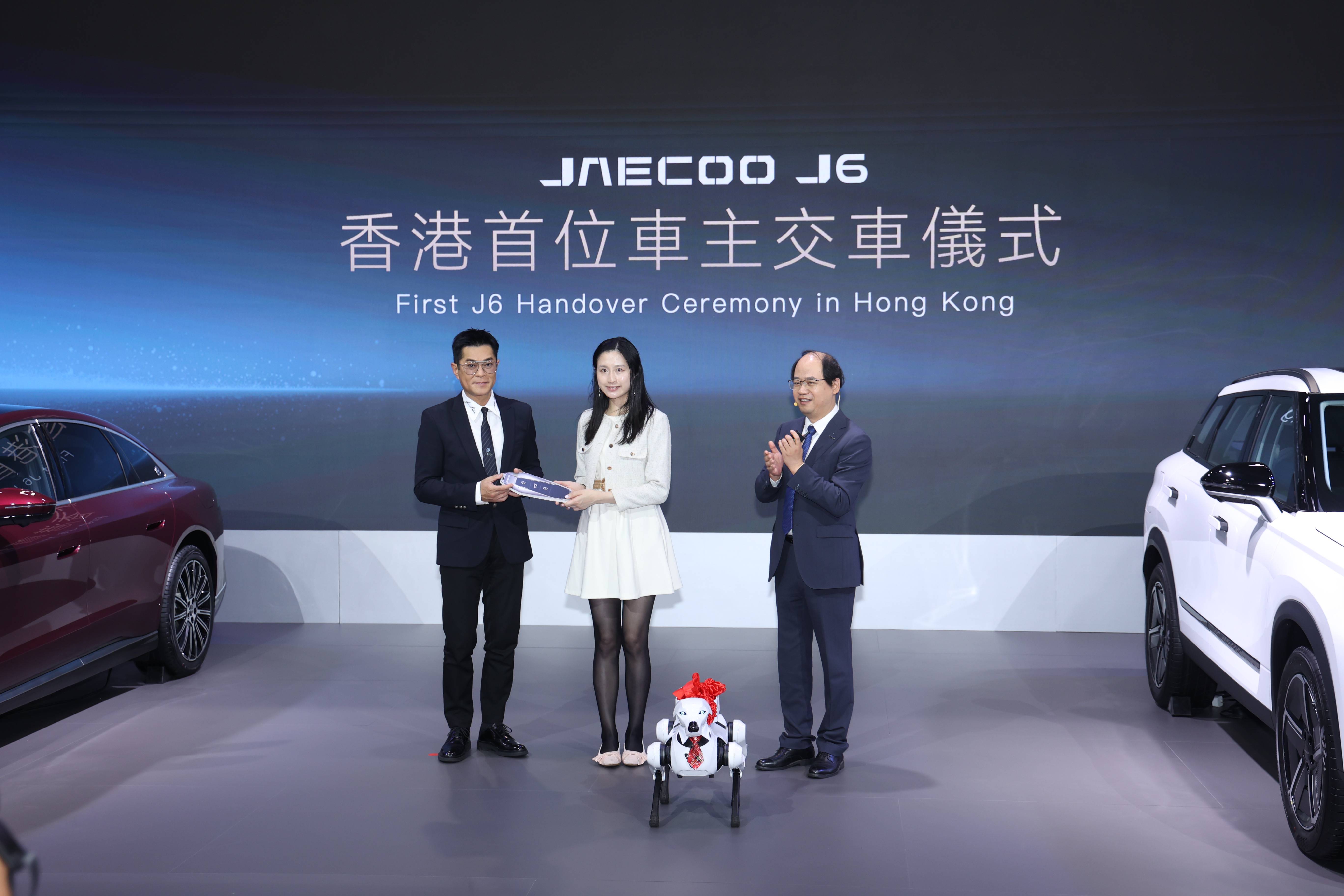 在Jaecoo 6香港首位车主交车仪式上,古天乐担任起“交付官”,而机器狗Argos则化身成了“钥匙管家”,背负着象征启动未来的新车钥匙,穿越密集人群和复杂环境,稳稳行至古仔面前,将钥匙优雅呈上,为本次新车交付仪式画上“点睛之笔”,携手Jaecoo 6首位车主一起奔赴精彩灿烂的新征程。墨甲机器人和机器狗的出色表现,引得古仔现场感叹“好玩、智能!”,围观群众更是直呼“真係犀利”。交付仪式上这场精彩的科技秀,为现场气氛增添了别样的智趣和温馨。